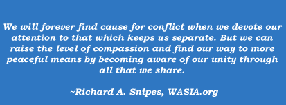With faith in the evolution of the human spirit, WASIA is committed to developing global initiatives that promote peace and prosperity by encouraging the awareness of unity and the importance of the respect and reverence for all life.